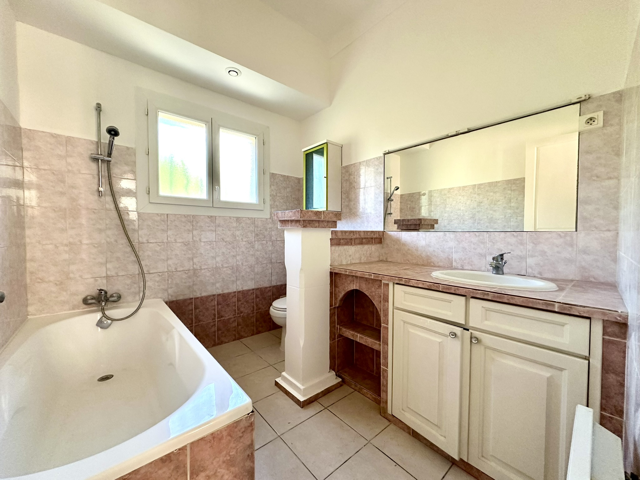 Idéalement située dans une impasse, entre Fréjus-Plage et Port-Fréjus, dans un quartier calme et très recherché, cette charmante maison des années 70, offre un cadre de vie privilégié, exposée sud -ouest, à quelques minutes de la mer, de la base, des commerces et toutes les commodités tout en offrant un cadre de vie paisible.. Edifiée sur un terrain de 508 m2, la maison développe une surface habitable d'environ 119 m2, intelligemment divisée en deux appartements, offrant de de multiples possibilités : résidence principale avec logement indépendant, maison familiale ou investissement locatif. Au rez-de-chaussée, 58 m2 entièrement climatisés, il se compose d'un hall d'entrée, d'une cuisine indépendante, de deux chambres dont une petite, d'une salle de bain avec WC, d'une terrasse, et d'un jardin à l'abri des regards. A l'étage : Appartement climatisé de 60 m2, remis au goût du jour, hall d'entrée, séjour, deux chambres, cuisine aménagée semi équipée, salle d'eau avec WC, jardin avec arbres fruitiers, piscinable, pour compléter ce bien un garage, un véritable atout. Baignée de lumière et empreinte de beaucoup de charme, cette maison séduit par son emplacement rare, son calme, et son fort potentiel. Prix du bien : 562 000 euros Référence annonce : 1073 Surface : 119 m2 Date de réalisation du diagnostic energétique : 21.06.2024 Honoraires à la charge vendeur A visiter sans tarder, vous pouvez joindre Caroline au 06 09 93 56 66