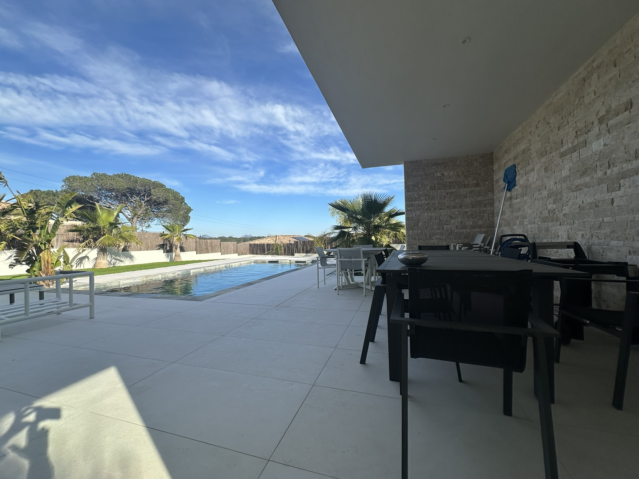 Un bien d'exception aussi rare que désirable!!!! Edifiée en 2024, cette villa contemporaine de 195 m2 à PUGET-SUR-ARGENS, incarne l'élégance moderne dans sa forme la plus aboutie. Au rez-de-chaussée : Dés l'entrée, la lumière traversante inonde une spectaculaire pièce de vie de 100 m2, sublimée par de grandes baies vitrées ouvrant sur une terrasse de 80 m2 plein sud, offrant un accès direct à une élégante piscine chauffée et sans vis à vis - un véritable écrin pour des moments privilégiés entre amis, un incroyable séjour avec une cuisine ultra contemporaine entièrement aménagée et équipée avec des prestations à la hauteur. Matériaux haut de gamme, carreaux 120x120, climatisation gainable et centralisée qui permet de réguler la température de chacune des pièces, placard, et WC indépendant. A l'étage : Côté nuit, quatre chambres avec dressing dont une somptueuse suite parentale avec salle d'eau et WC offrant confort et intimité, un solarium de 20 m2 vient parfaire l'ensemble avec une vue à couper le souffle. A l'extérieur, un jardin d'inspiration balinéenne de 805 m2 avec palmiers, Washingtonia et gazon synthétique crée une atmosphère dépaysante et sans contrainte. Garage de 25 m2 avec buanderie. Maison sous garantie décennale, ici chaque détail a été pensé pour conjuguer esthétisme, confort et sérénité. Pour parfaire ce bien, la maison dispose d'un portail électrique, d'un système de vidéosurveillance et d'un visiophone à l'entrée. Référence : 1090 Date de réalisation du diagnostic énergétique : 26.09.2025 Prix : 1 150 000 euros Les honoraires sont à la charge du vendeur Vous l'avez compris, vous n'avez juste qu'à déposer vos valises.